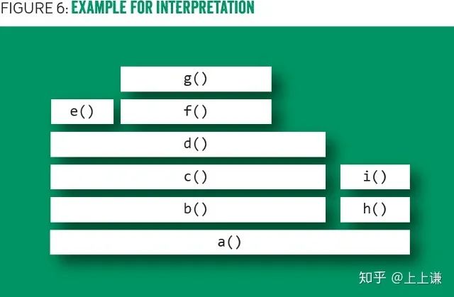 为了更直观的让大家理解火焰图的含义,下面以图六作为例子。这是使用cpu profile生成的一张火焰图。