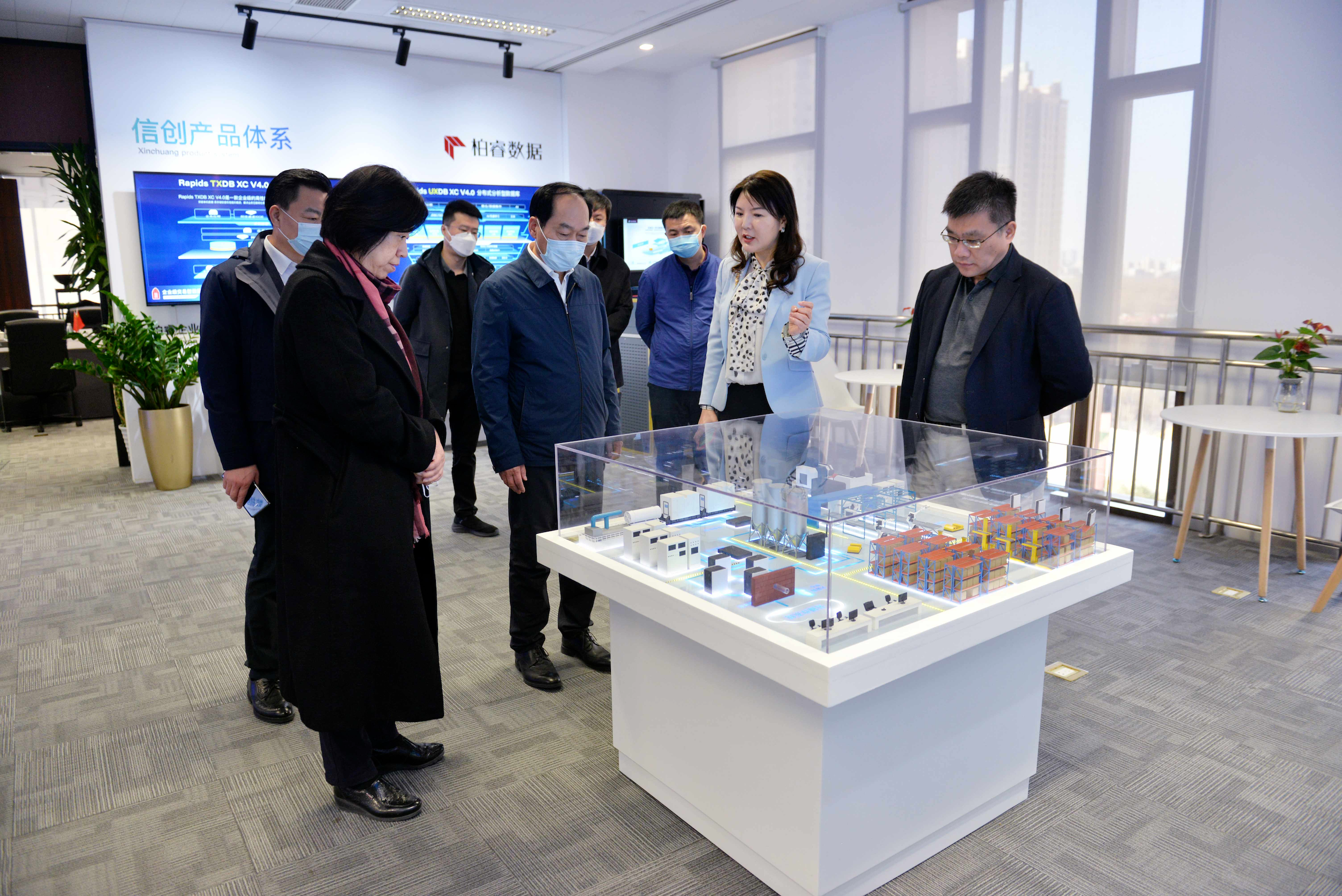 3月10日下午,无锡市滨湖区委书记孙海东、区委办主任钱锡贤、区商务局局长王文君、区国投公司总经理顾弘等一行莅临柏睿数据走访交流,柏睿数据董事长兼首席科学家刘睿民,总裁梁雪青,副总裁胡贵春、李远志等接待了来访领导并介绍了公司发展情况,双方就未来的协同发展进行了深入探讨交流。