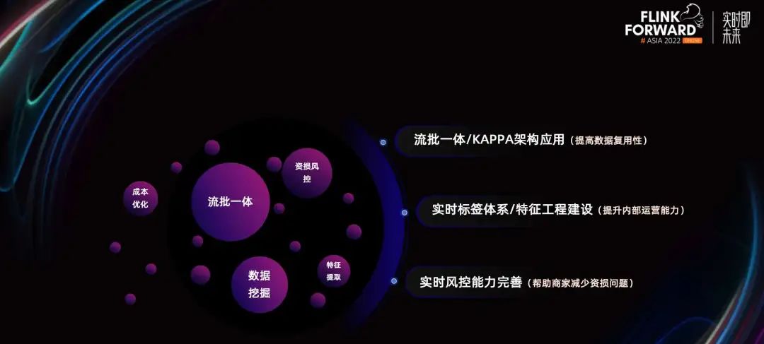 对于实时计算未来的展望,我们将围绕流批一体、数据挖掘、风控能力这几个关键词展开。对于流批一体,我们希望找到能够具体应用 Kappa 架构的场景,提高我们的数据复用性。对于标签体系,当前还没建设比较完整的标签体系,未来会考虑在商家标签或者商品标签方面逐步建设,提高我们内部的运营能力。对于风控能力,我们当前已经有物流预警的风控产品,未来我们将扩展其他的业务场景,比如库存预警、分销价格预警等等,帮助商家解决资损问题。▼ 关注「Apache Flink」,获取更多技术干货 ▼