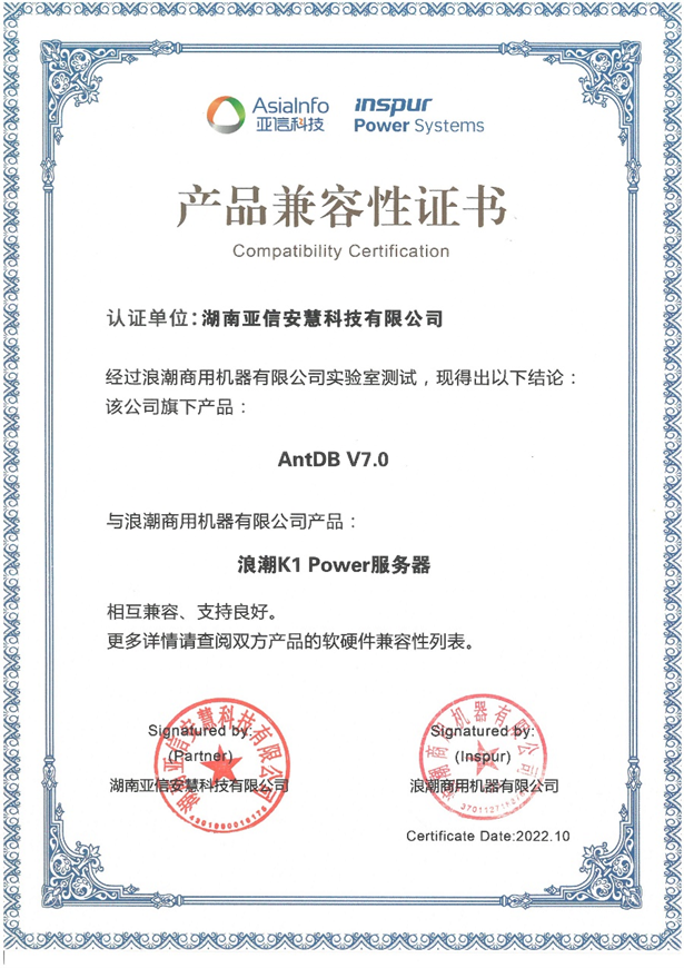 该联合解决方案中,亚信科技AntDB 7.0在浪潮K1 Power服务器Linux系统上编译顺利通过,安装部署、启停启停等管理测试结果正常,其各项SQL操作功能测试返回结果正常,亚信科技AntDB 7.0与浪潮K1 Power服务器Linux系统完美兼容。