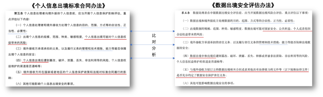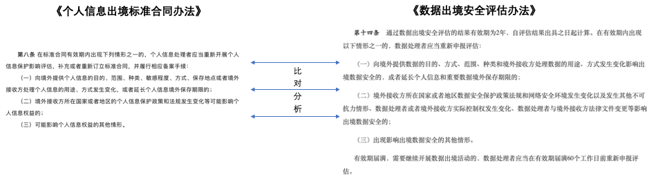 “个人信息合同方式出境”与“申报数据出境安全评估”要点比对分析