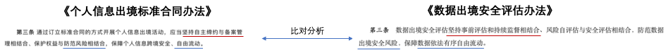 “个人信息出境坚持原则”与“数据出境安全评估坚持原则”比对分析