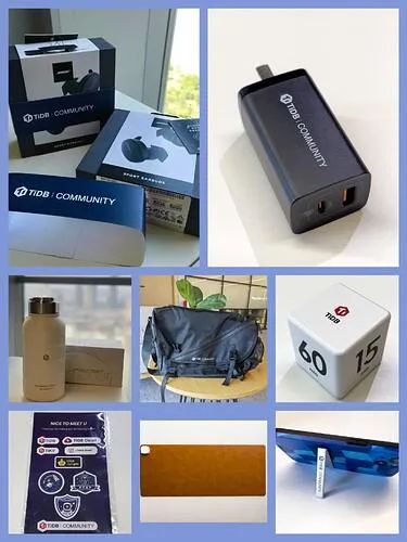 即日起至 2023 年 5 月 31 日,快来投稿吧,TiDB 社区版 Bose 入耳式耳机 + 67 W快充插头、TiDB 新款贴纸、超薄手机支架、白色随行杯、定制计时器、 All in TiDB 键帽、 TiDB 智能皮革鼠标垫……TiDB 社区全新周边等你来拿!