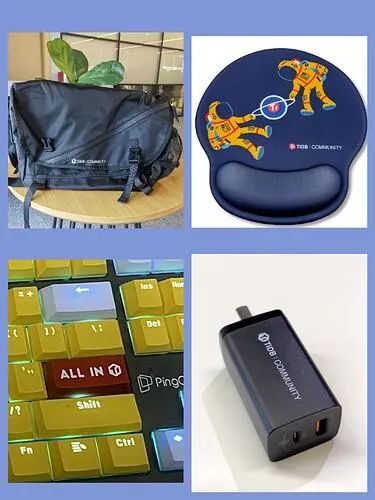 三等奖奖杯+TiDB 挎包+鼠标垫+TiDB 新款键帽+快充插头