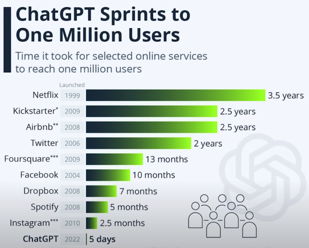 ChatGPT 自上线以来,凭借其优异的自然语言理解和输出能力,仅花 5天就成为了活跃用户过百万的现象级产品。