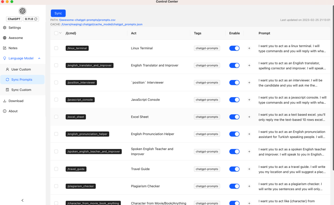 当前,ChatGPT 在 GitHub 上有非常多的最佳提示语样例。上述的例子很多也是从 https://github.com/f/awesome-chatgpt-prompts 中截取下来进行分析。有意思的是,我们可以下载 ChatGPT 桌面版 应用直接导入最佳样例来体验更优质的对话内容。