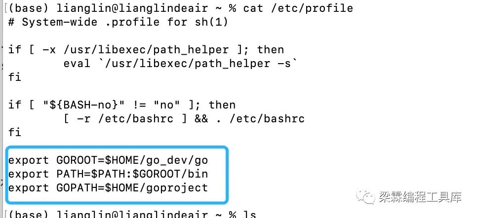 4、在/etc/proflie文件中配置go的开发环境信息,这样就可以在任意位置使用go命令了,说明:这里的GOPATH是后续项目开发的工作路径,在导入自定义包的时候会用上