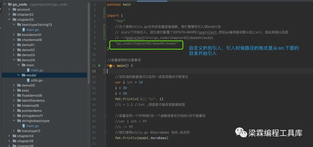 Go中自定义包的引入