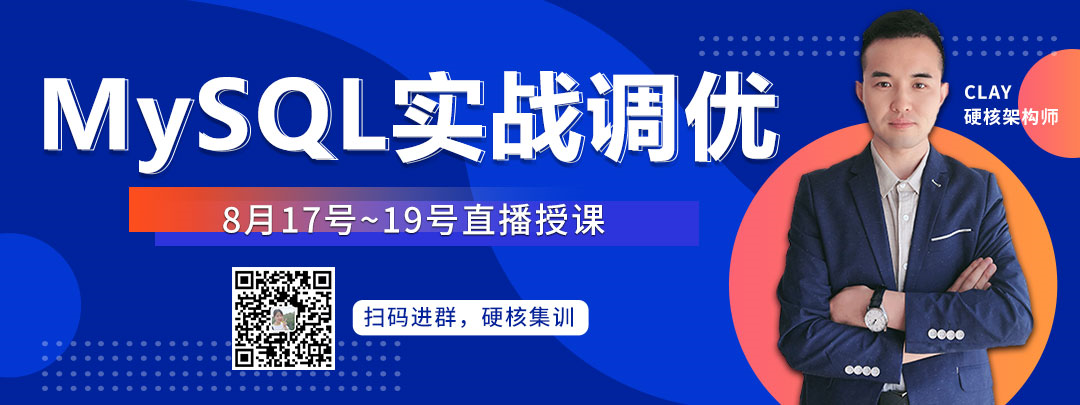 顺应新时代互联网三高三V需求,你必须来一波MySQL硬核集训!3天时间,从MySQL实战到精华建议,从执行计划到索引数据结构,输出一线互联网公司数据库架构方案。课程由资深DBA,硬核架构师Clay在线直播实操,全网首发,有直播无回看,扫码限时免费学习!