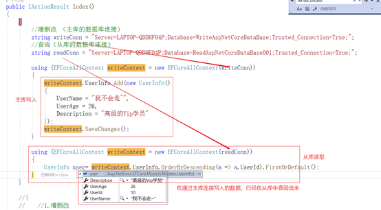 那再来看看一个Context多个连接数据库的方案:一个Context对应多个连接;如果增删改,就使用连接主库的数据库链接;如果是查询,就使用,从库中的任何一个;因为主从数据库的结构和数据是一种的;这种方案是可行的;那我们就来实操一下!