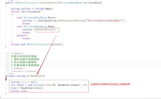 请看到我们定义的从库创建实例部分代码,已经增加了选择查询数据库连接的策略;如15