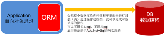 ORM 对象关系映射(Object Relational Mapping),如下图所示,其实就是以面向对象的思想对数据库的访问操作做个封装,开发者在使用的时候,不需要关注数据库的各种Sql语句,通过对OMR的操作,达到对数据库数据的增删改查。让开发者降低对数据库的学习成本;一个字,就是爽!