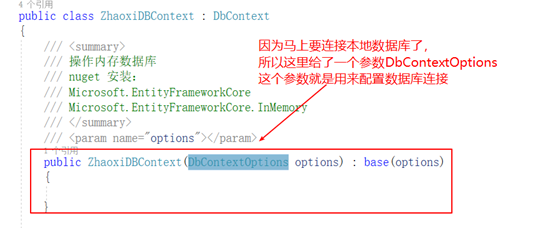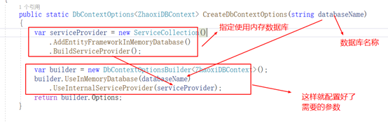 如此就可以使用这个DbContext,有上下文,有配置信息DbContextOptions配置参数;那配置参数DbContextOptions怎么配置呢?如图4;这使用到了内存数据库,索引需要Nuget引入程序包:Microsoft.EntityFrameworkCore.InMemory;这个包就是支持内存数据库。