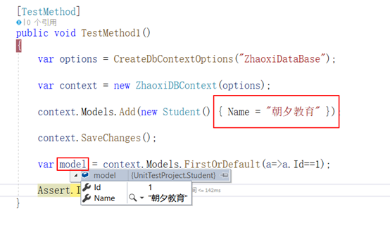 以上做好准备工作:定义好DbContext上下文;上下文需要的配置信息就可以直接通过上下文DbContext访问内存数据库了。