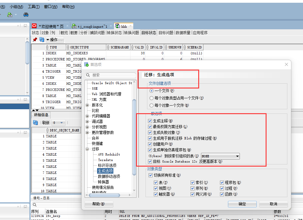 也不清楚是权限问题还是sqldeveloper 迁移设置问题。操作如下::
