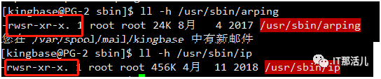 集群中要求各个主机之间可以免密登录。 repmgr 由于需要绑定VIP和解绑VIP,因此操作系统用户Kingbase需要有权限执行ip 和 arping命令,因此需要,修改命令的权限:
