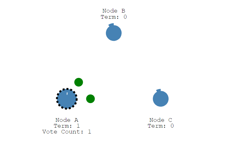 然后Node A就将请求大家投票的信息发送给Node B和Node C。