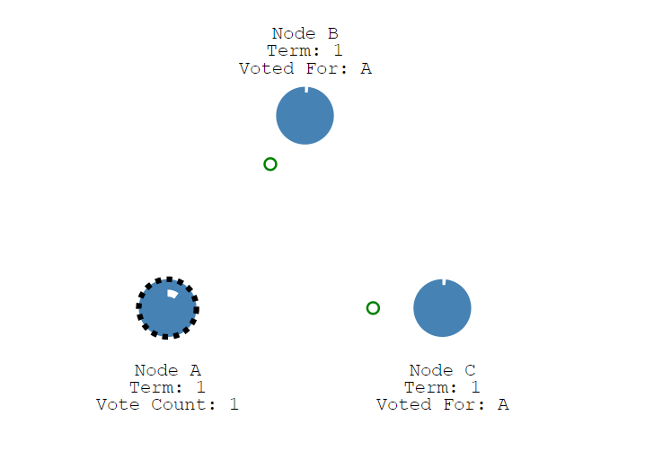 结果在新一轮中,Node A获取了大多数选票,重新成为了领导者。