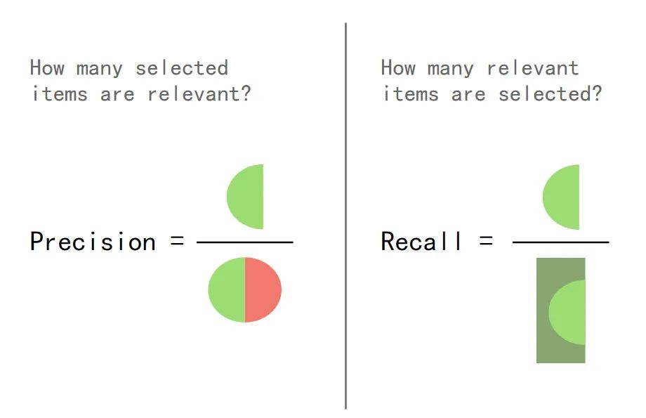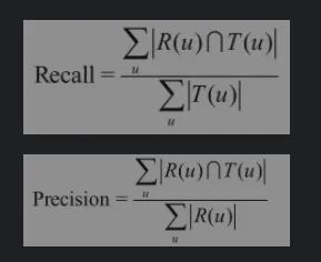 召回率描述有多少比例的用户—物品评分记录包含在最终的推荐列表中,而准确率描述最终的推荐列表中有多少比例是发生过的用户—物品评分记录