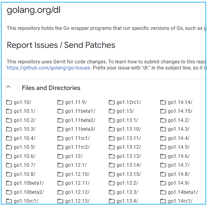 $ git clone https://go.googlesource.com/dl$ cat dl/go1.20.2/main.goimport "golang.org/dl/internal/version"func main() {version.Run("go1.20.2")}$ cat dl/internal/version/version.go | grep httpsreturn "https://dl.google.com/go/" + version + "." + goos + "-" + arch + ext