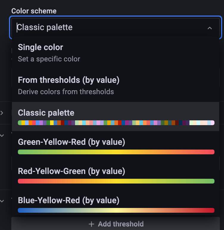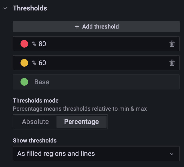11. 在右侧的 Thresholds 则是设置阈值,可以结合 Standard options 中的配色方案使用: