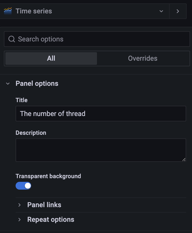 4. 在右侧的 Panel Options 中可以更新当前面板的标题、描述并设置面板背景是否透明。