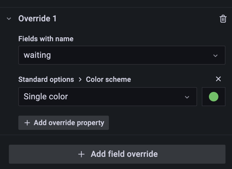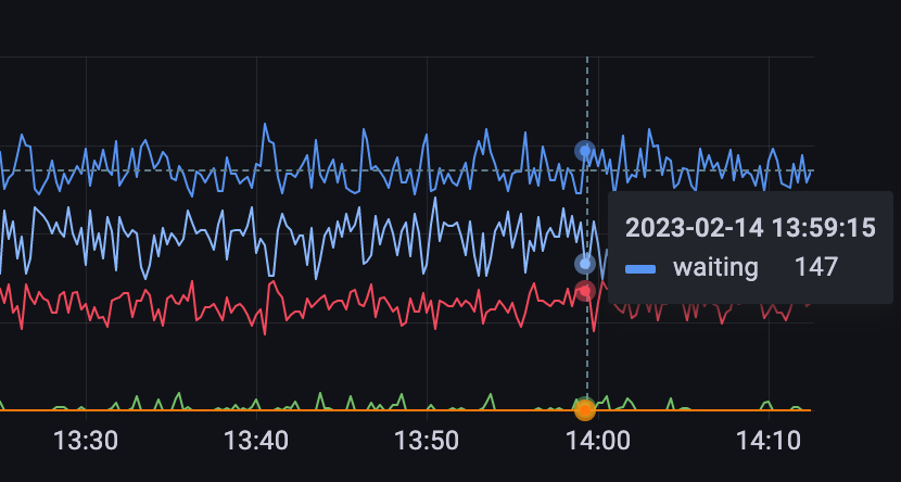 b. 例如我可以重写 name 为 waiting 的时间序列的颜色为绿色,如下所示: