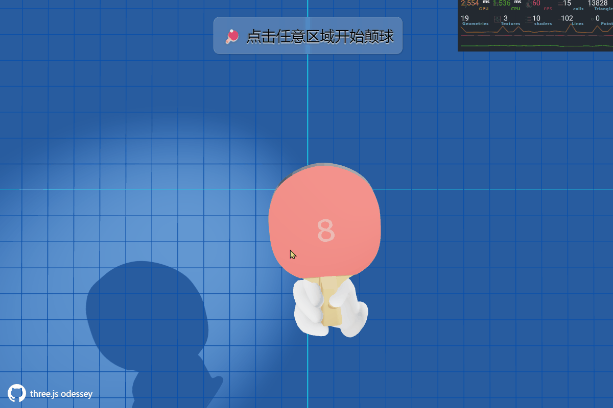 在正式学习之前,我们先来看看本文示例最终实现效果:页面主体内容是一个手握乒乓球拍的模型和一个乒乓球 🏓,对球拍像现实生活中一样进行颠球施力操作,乒乓球可以在球拍上弹起,乒乓球弹起的高度随着施加在球拍上的力的大小的变化而变化,球拍中央显示的是连续颠球次数 5️⃣,当乒乓球从球拍掉落时一局游戏结束,球拍上的数字归零 0️⃣ 。快来试试你一次可以颠多少个球吧 😏。