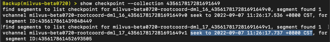 返回该 collection 里各个 shard 的记录的最新 checkpoiont。