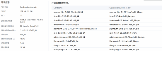 迁移评估:对待升级节点进行硬件,软件兼容性评估,分析待升级节点硬件与目标系统的兼容性的同时,也会对当前系统内的所有软件进行分析评估,并输出整体评估报告。