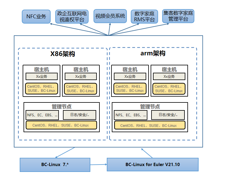 2022 年 12 月中国移动某省节点资源池开展操作系统迁移替换工作,部署的原操作系统为 BC-Linux V7,覆盖中国移动 NFC、视频会员、数字家庭等业务,目标是全部迁移至 BC-Linux for Euler 版本。自迁移实施工作开展 2 个月以来,移动云操作系统研发团队与省公司业务团队、运维团队紧密配合,先后解决驱动适配、内核异常报错、系统无法启动等多个技术难题,并通过 BC-Linux 迁移工具成功迁移 2k+节点。本次迁移后业务稳定运行,为后续大规模迁移奠定了坚实的基础。