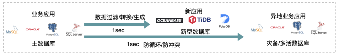 在业务改造及容灾方向上,有很多典型的场景,如业务架构升级、换数据库、做异构的数据转换、灾备/多活数据库等。CloudCanal 在这些场景中,不仅可以帮用户做基础数据迁移、同步的工作,也会帮用户做数据过滤、转换、生成、防循环等工作。