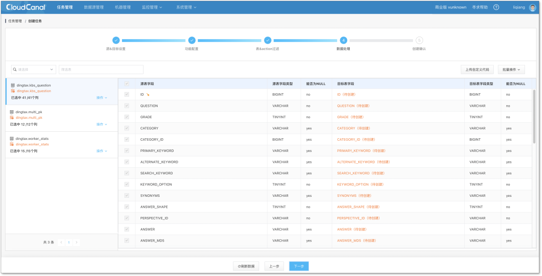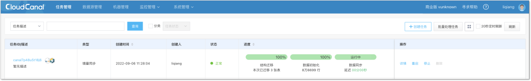 结构迁移、全量迁移、增量同步:这是一个全自动化的过程,该过程中可能包含以下几种情形。 如果对端建一些表,包括同构或者异构,CloudCanal 将会启动一个任务,去做结构迁移的准备; 如果需要在任务中做数据的初始化,CloudCanal 将启动一个迁移进程,将数据准备好; 最后当迁移完后,CloudCanal 会启动增量任务,去追赶已经落后的增量数据,直至达到一个稳态的程度。