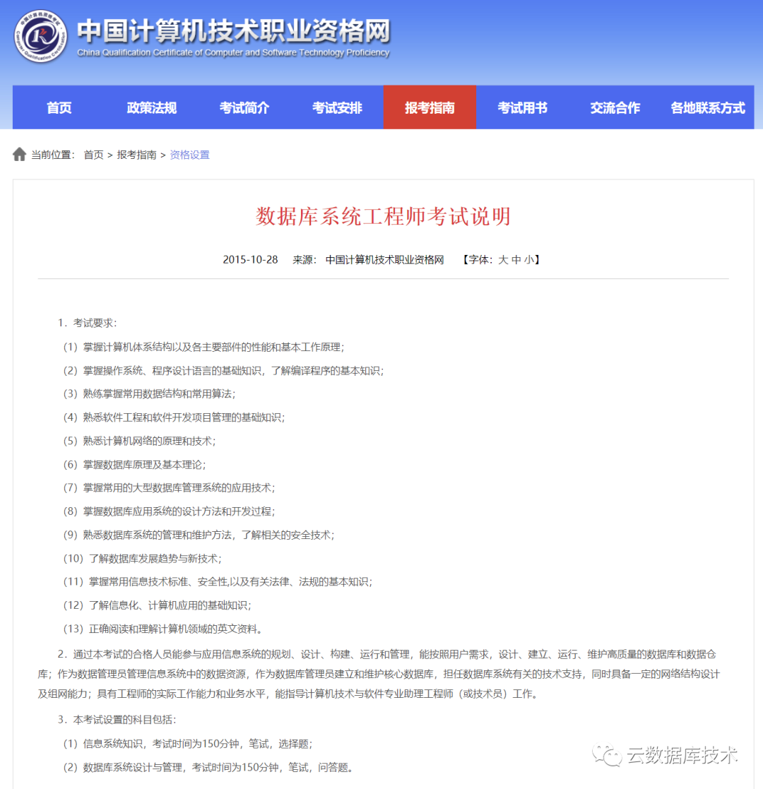 数据库系统工程师是中国计算机职业资格考试认证的考试之一,主要是面向DBA岗位,通过后相当于中级技术职称。在数据库实践认证领域权威性比较高,对计算机基础知识和数据库实践经验都有要求,是有含金量的专业认证。