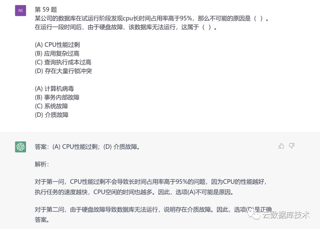 ChatGPT已经通过了美国MBA、法律和医学考试,ChatGPT又通过了中国数据库系统工程师考试。这次考试使用了2021年的真实试卷,上午的笔试题全部为选择题,总分75分(45分通过)。