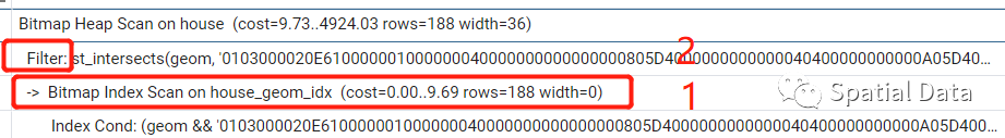 explain select * from house wherest_intersects(geom,st_geomfromtext('Polygon((118 32,118.5 33,119 32,118 32))',4326));
