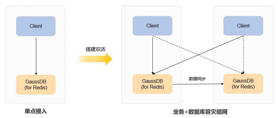 Redis)支持给两个跨region的实例建立双活关系,支持数据的同步,如果其中一个实例故障,另一个实例能接管业务,持续提供可靠的数据库服务。双活解决方案已在华为内部ERP中稳定部署运行,为ERP业务的持续运行提供强有力的保障。