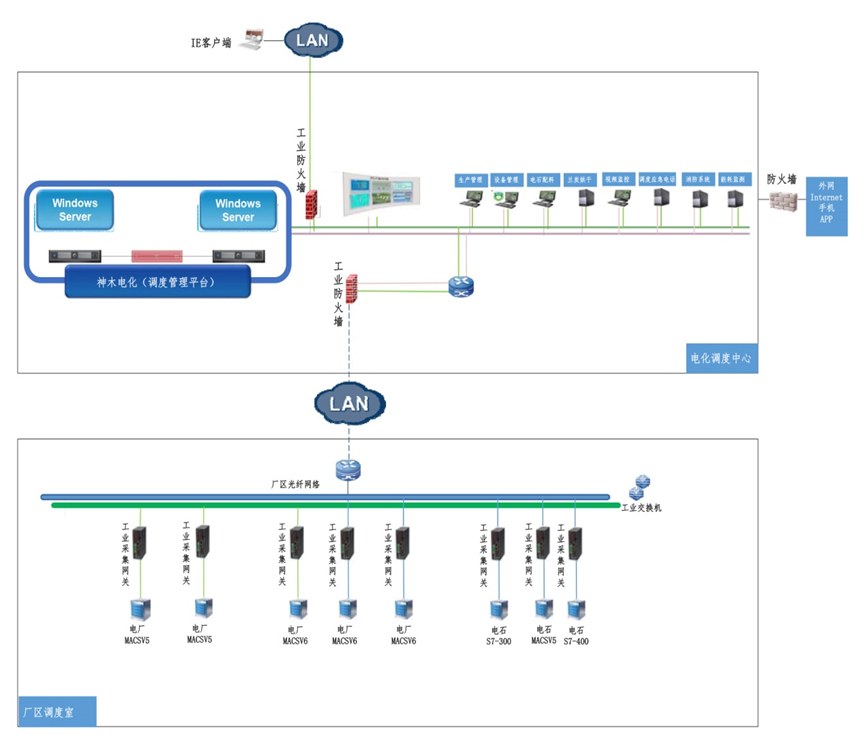 包含SCADA系统数据采集和传输,数据的校核和客户端软件eForcecon Client数据展示。以采集电厂、污水处理系统、电石厂、电石配料站等场站的数据;同时监测生产、消防、能耗在线检测等系统的运行数据。