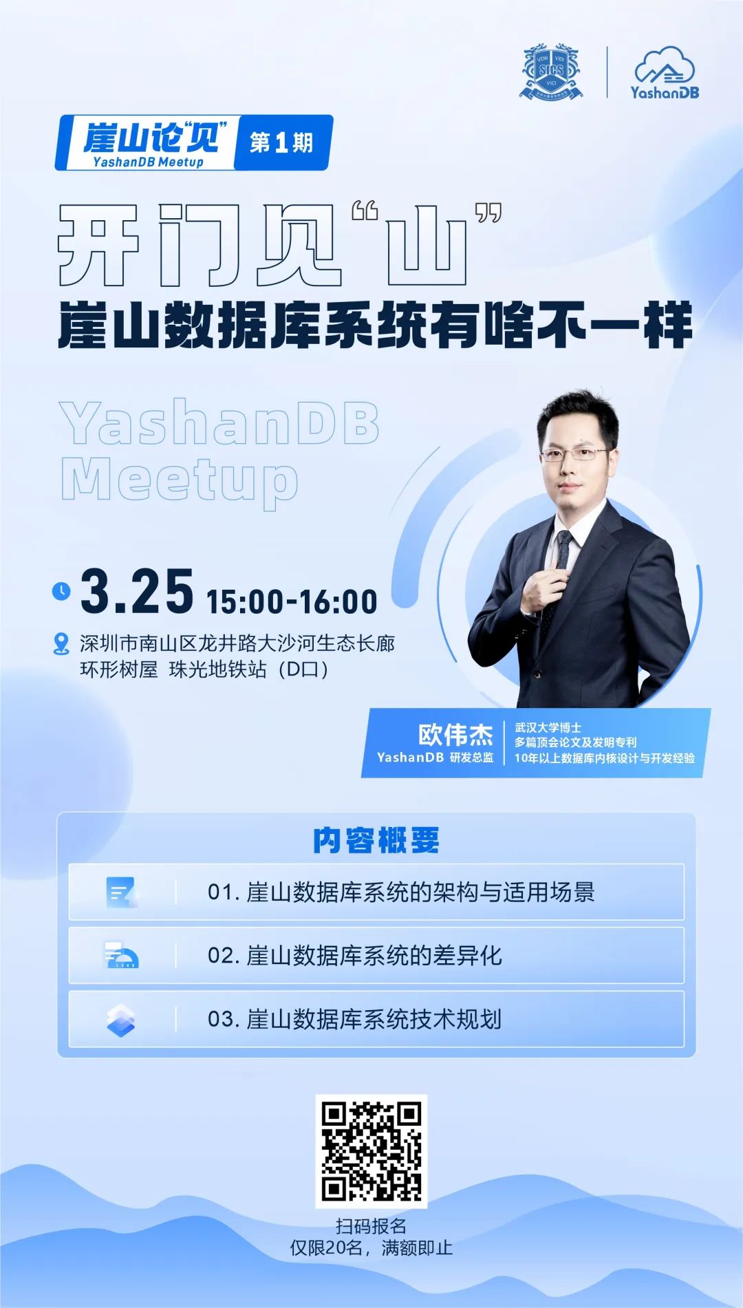 由深圳计算科学研究院YashanDB团队发起的数据库技术Meetup,面向全行业技术开发者或数据库技术爱好者,旨在搭建一个自由、开放的技术交流平台。Meetup内容聚焦数据库原创理论、技术架构等方面,邀请YashanDB技术团队和业内资深从业者进行分享,提供有用、有料的技术解析和实战经验,为您的工作加“码”助力。