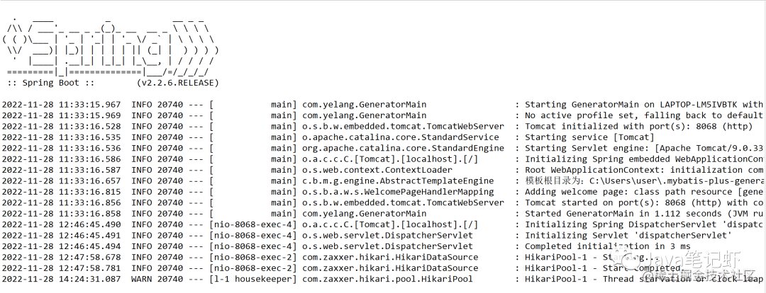 在输出的日志中,可以看到程序的运行端口,以及默认的模板目录地址。在浏览器中输入访问地址http://localhost:8068/,即可进行配置生成。