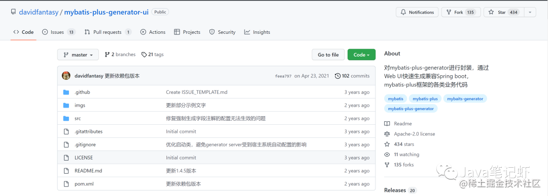 因此,我们需要一款支持高度定制化,带图形UI页面,能适配多数数据库的基础程序生成框架。本文就介绍这款基于Mybatis-Plus的代码自助生成器,github地址:mybatis-plus-generator-ui。