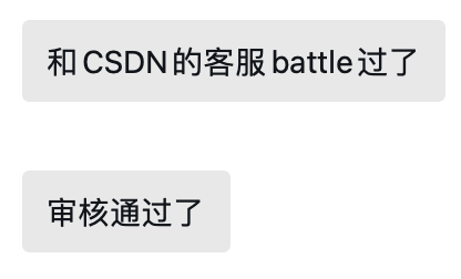 这里有个小插曲就是初次提交的时候,没有通过 CSDN 平台审核,但是好文章自然有底气!以理服人!