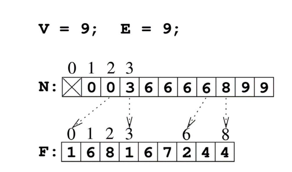 对于点 IDx,取邻居 ID 就是 F[N[x]] 到 F[N[x+1]-1]。