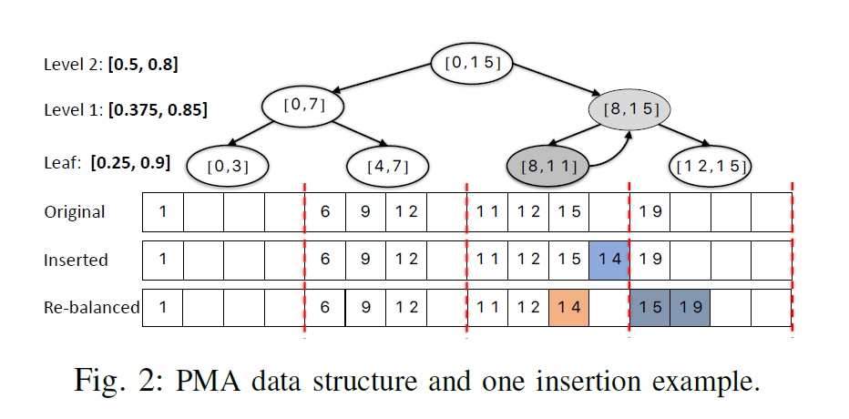可以看到,PCSR 的预留位置多少都是需要重平衡,不能过多也不能不足。特别是大批量增删时,对预留位置的处理会是一个较重的操作。