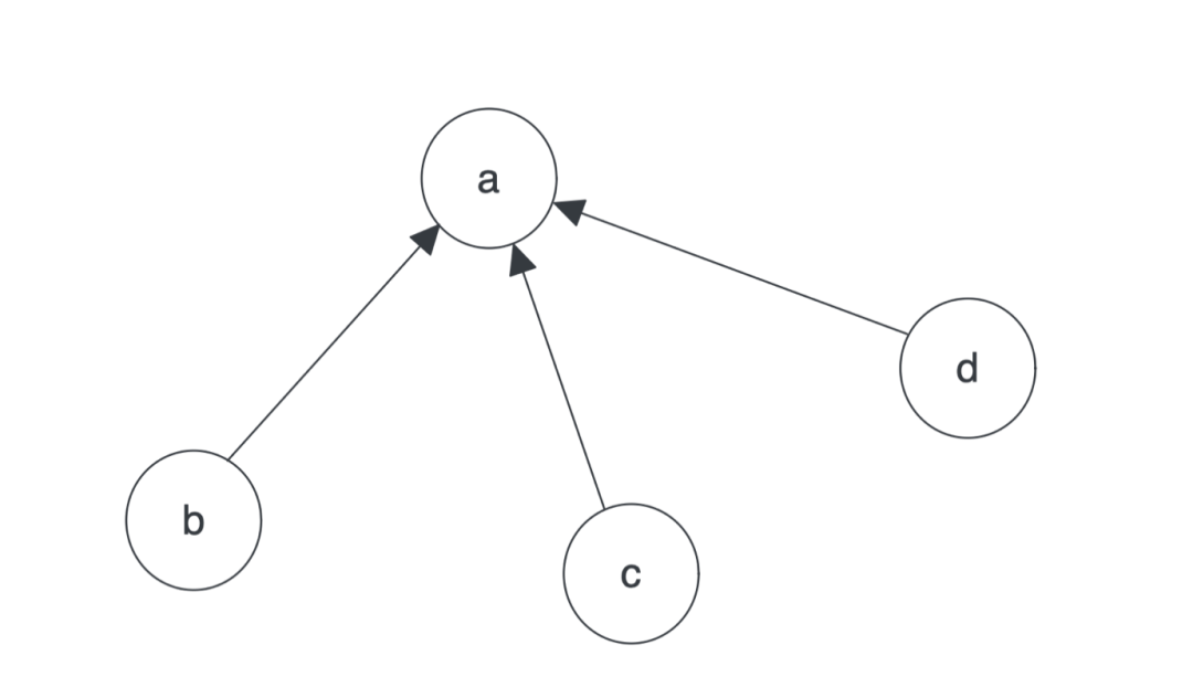 B 链接到 C,D 链接到 B 和 C,A 点的值计算的方式如下: