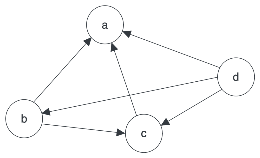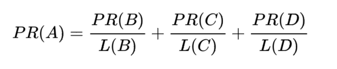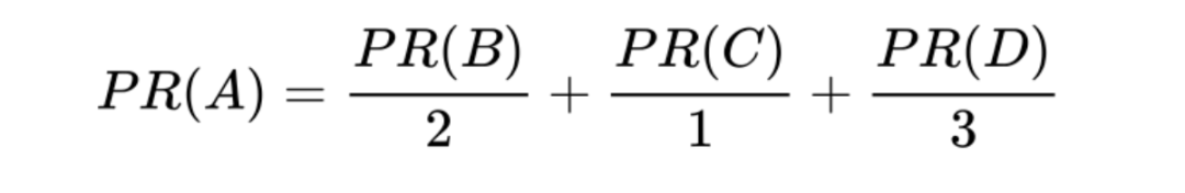 换句话说,算法将根据每个页面连出总数平分该页面的 PR 值,并将其加到其所指向的页面:
