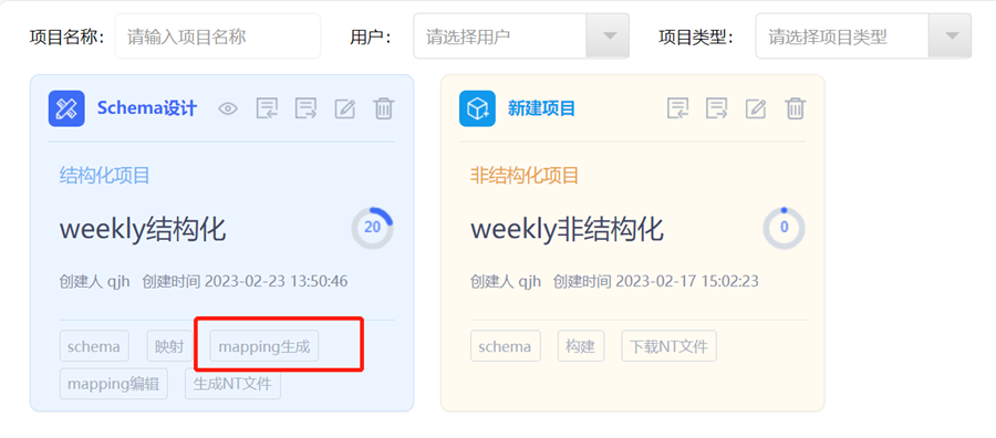 通过在项目卡片上点击【mapping生成】即可根据前面四步设置的映射关系自动生成mapping文件。