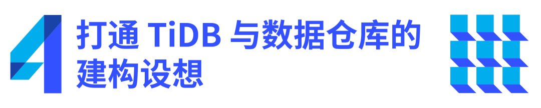 结合这个特性,基于最近的一些实际需求和 POC 的成果,我想聊一聊与 TiDB 搭配的数据仓库应该是什么样的,是否能够有一个足够简单的架构,搭建一个适配大多数云的数据仓库。
