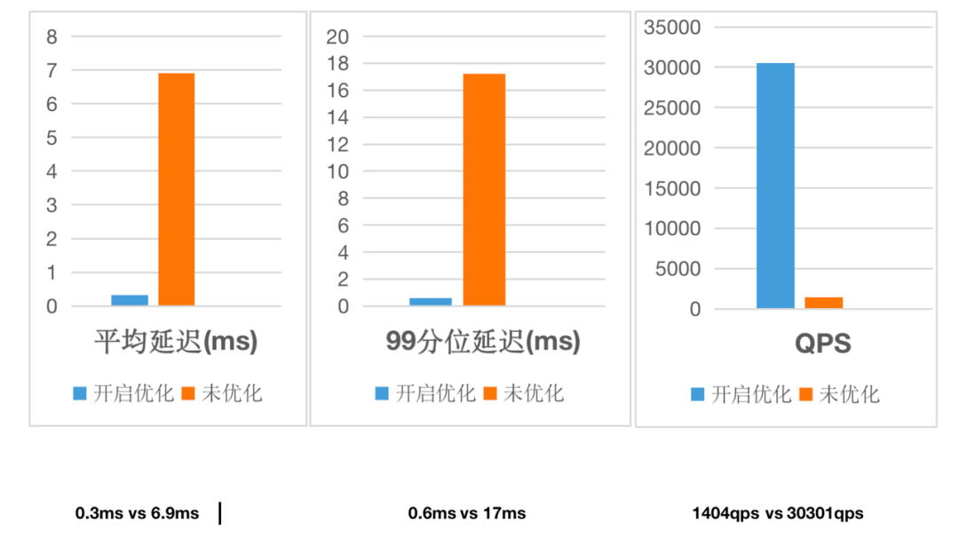 开启优化(即同时开启行存、点查短路径以及 PreparedStatement)与未开启的测试结果如下: