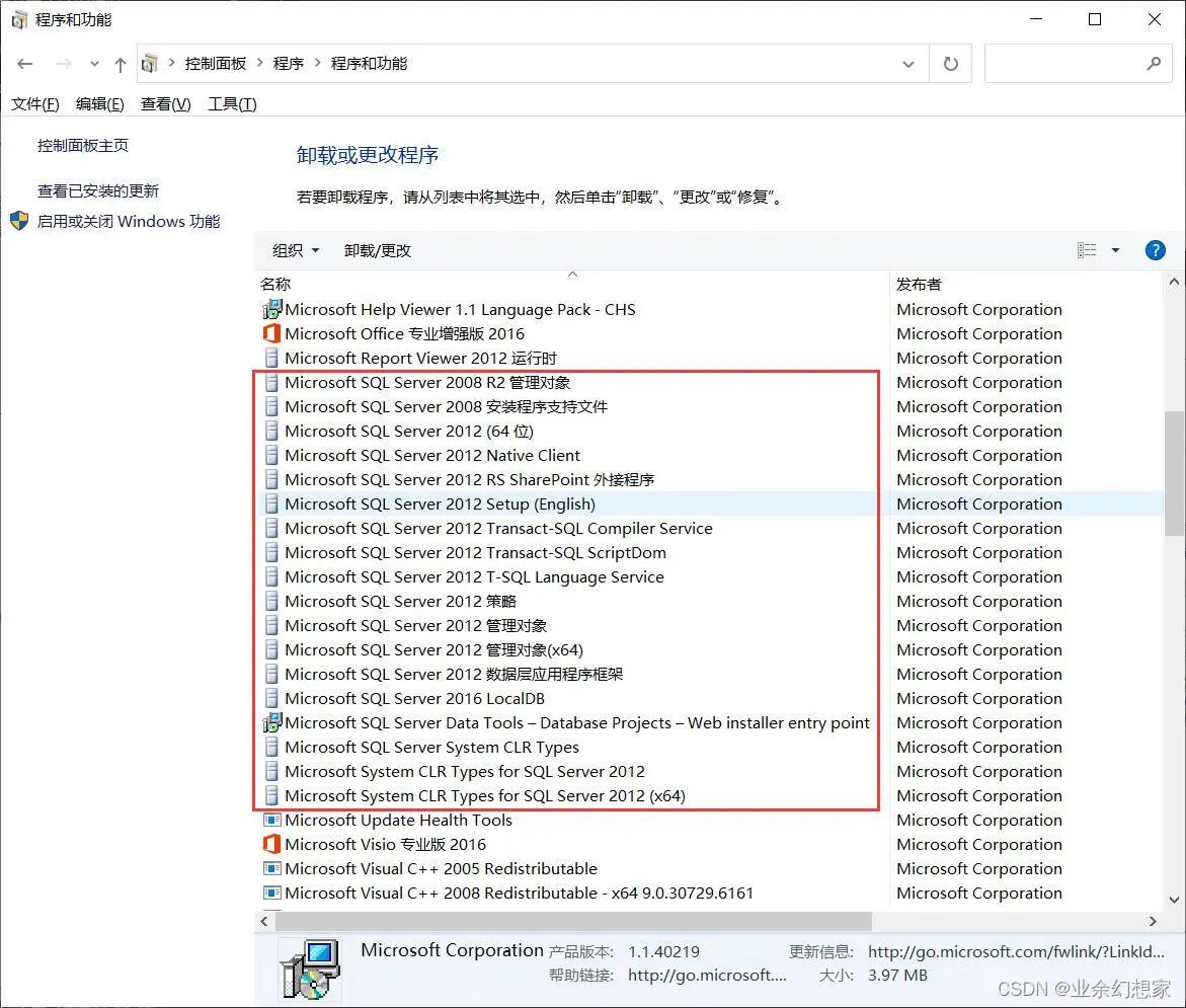 注:一些版本的 SQL Server 如果还单独安装了 SQL Server Management Studio (SSMS) 管理工具,那么这个也要一起卸载掉